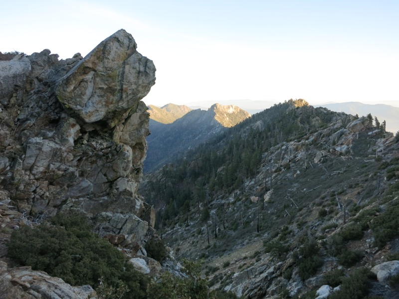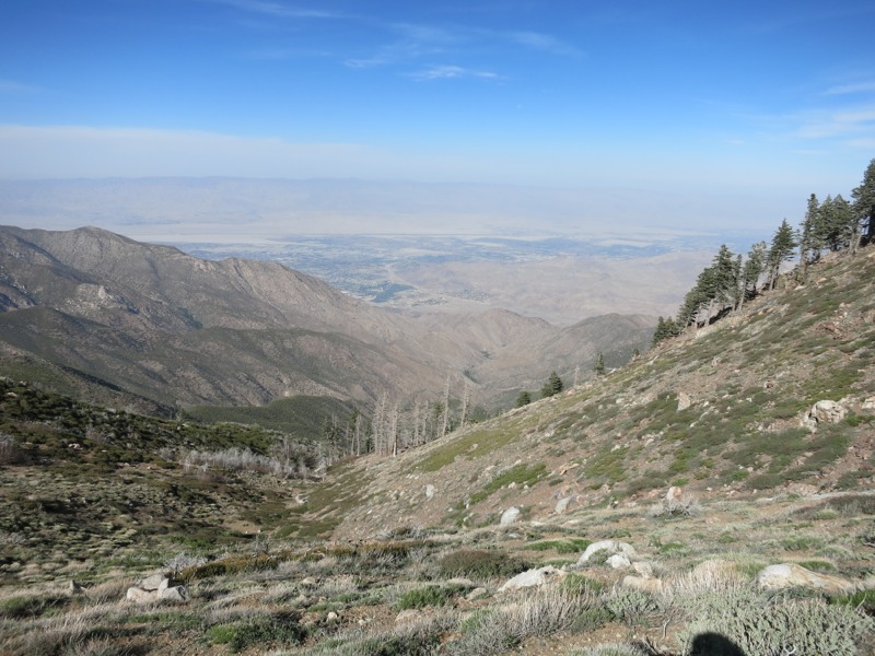 The best thing about today were the views – we looked down on Palm Springs and the desert all day and now that it’s dark we can see the town from our campsite all lit up. Rolling peaks and rocky ridges as far as the eye can see…it was beautiful to look at but rough to hike. The ascent of Spitler and Apache peaks were especially steep, and as we hiked the last few miles to the campsite it seemed that the grade would never get gentler.