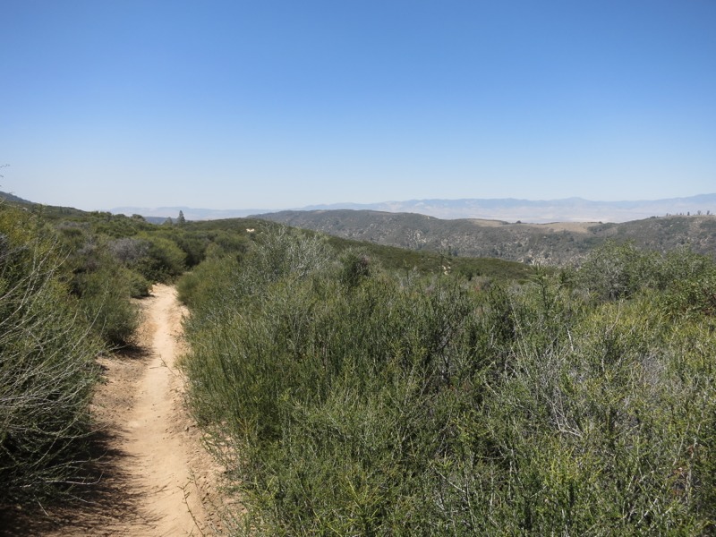 We crossed the road and started up a climb over another small ridge of mountains. We were buzzed by an LA fire helicopter, but they seemed to just be keeping an eye on the nearby trail crew doing brush and tread maintenance. The guy clearing the brush had a super heavy duty weed whacker and a face shield and everything. We thanked them for all the work they do so we can hike on a nice, solid clear trail. As we reached the top of the climb we found a little unexpected trail magic in the form of cold Cokes. We took a break and looked out over the Mojave as we drank them. Not much separating us from the desert now…