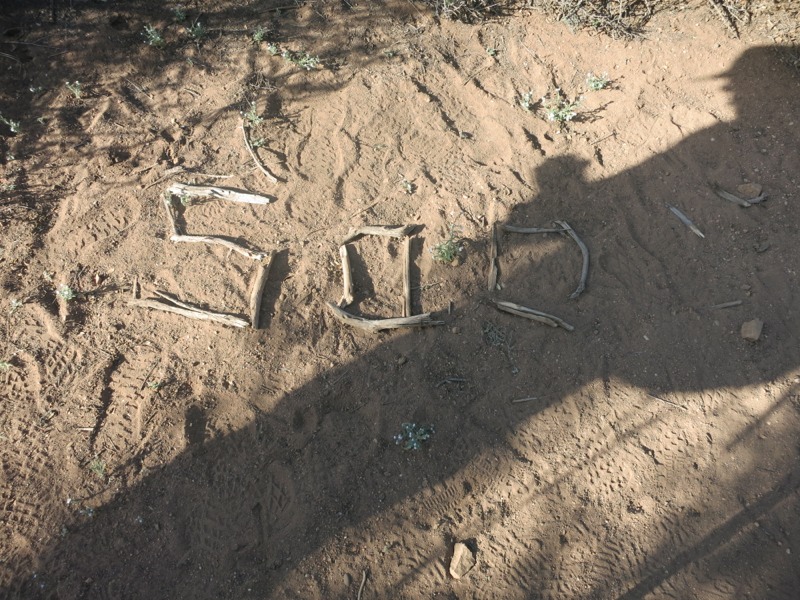 We slept in this morning way past our usual alarm. After last night’s hike and the last few days of close quarters with lots of people, we were craving a normal night of uninterrupted sleep. It felt strange to be lying in bed when the sun was so high in the sky already. The day was breezy and cool for this area so we didn’t have to worry about getting a jump on the heat. As it turns out we had camped just short of the road to Lake Hughes and the water cache there. All the time we spent at the Saufley’s and the Anderson’s means that we have moved back in the pack and a lot of the people we saw today we don’t know very well…at least not yet. It never seems to take very long out here.