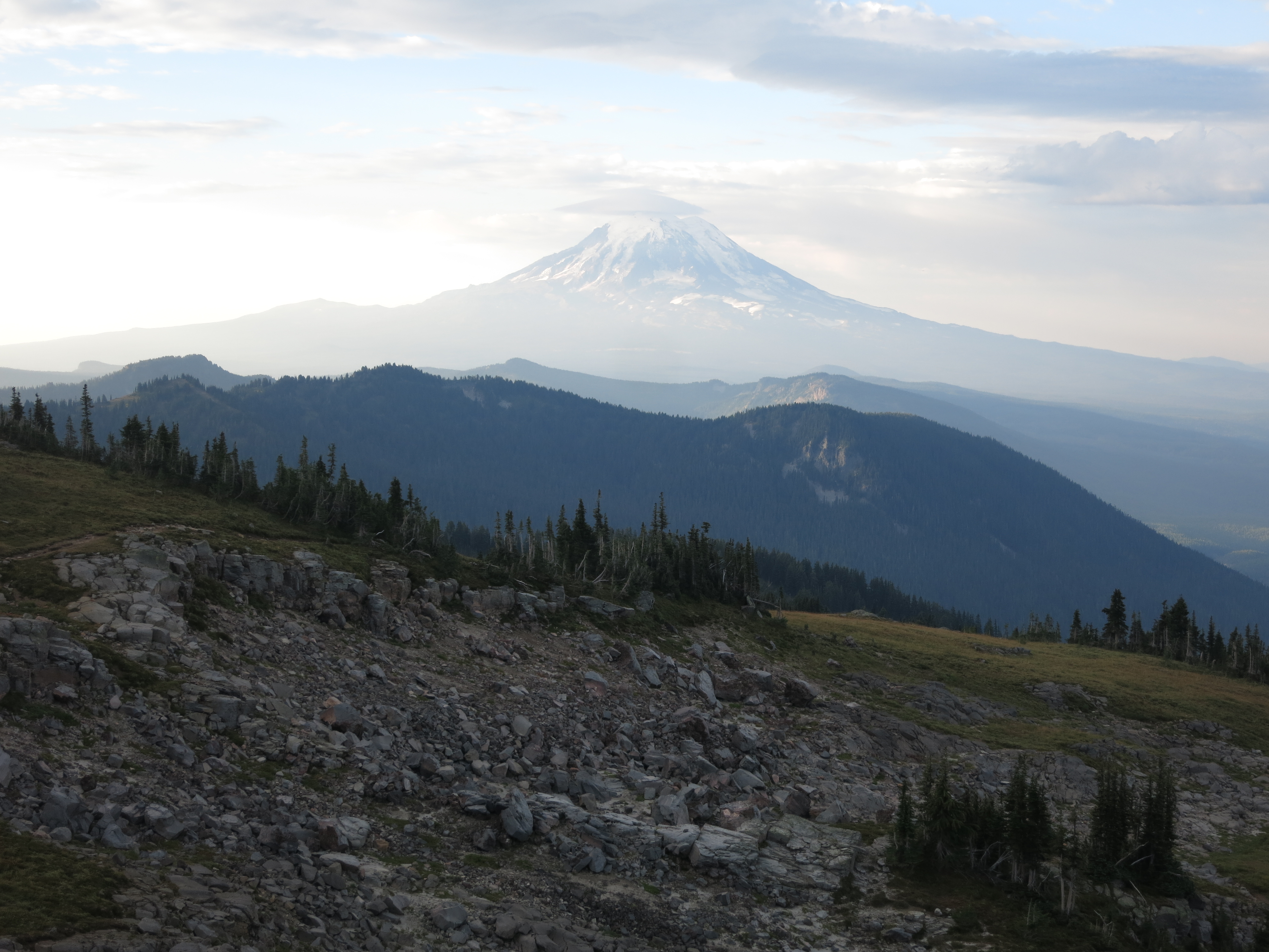 We were up earlier than normal this morning. We knew our hike into town would take longer than normal, both because of some challenging terrain and because we would take a lot of time sightseeing. After nearly a week of gorgeous, clear, hot weather the pattern was shifting. In the morning dusk we could see lightning filling the clouds that had settled around Mt. Adams overnight.