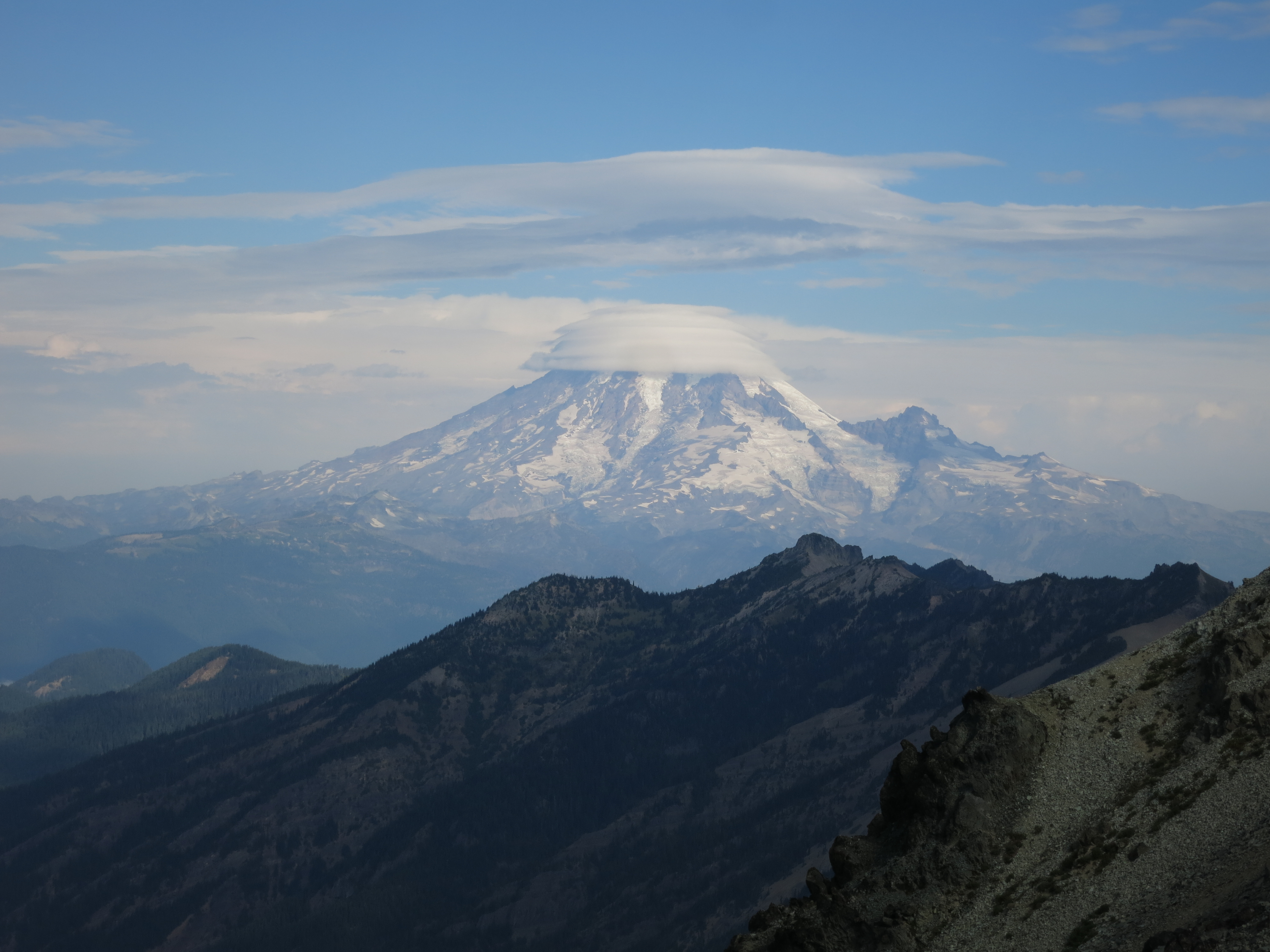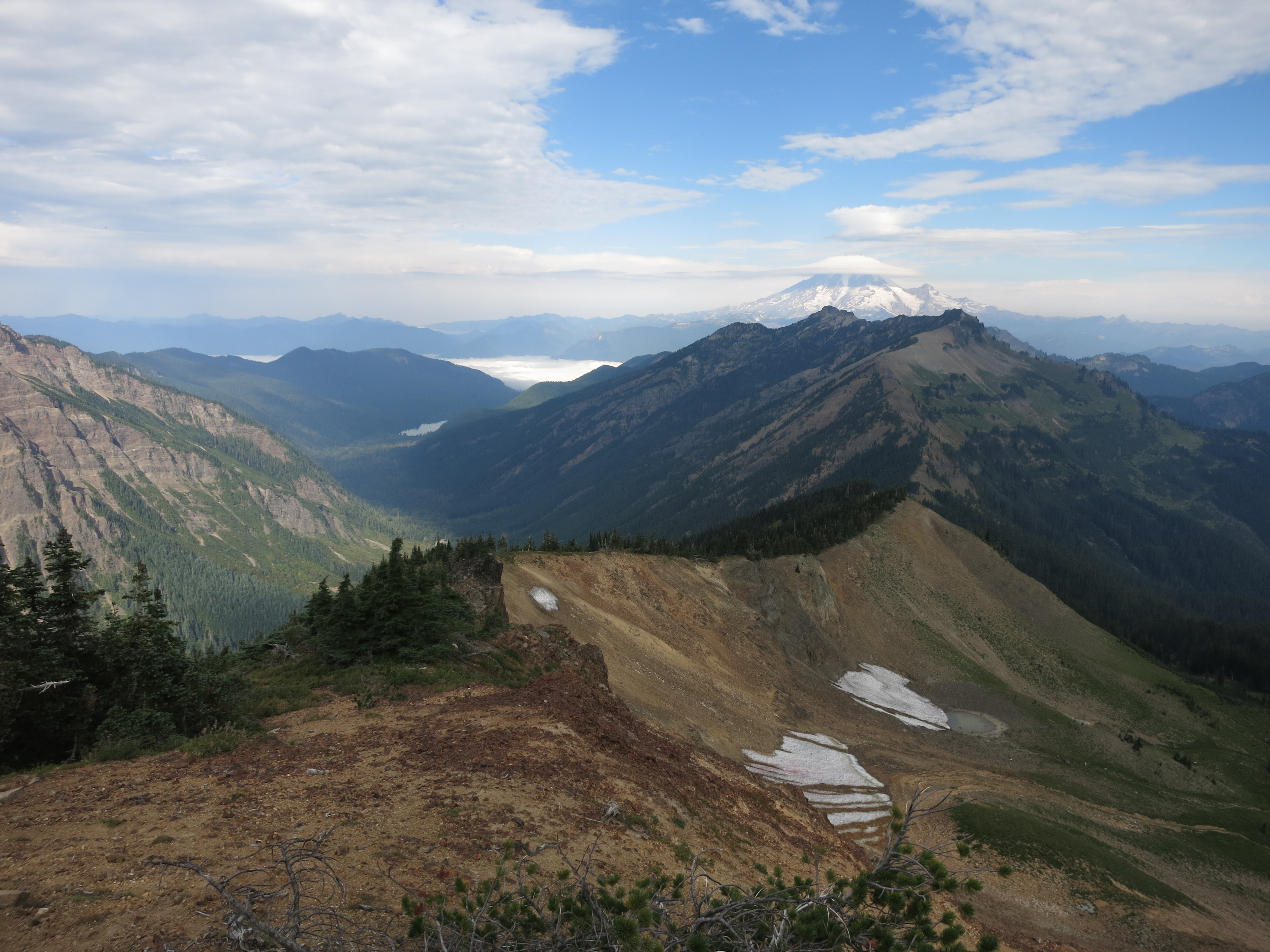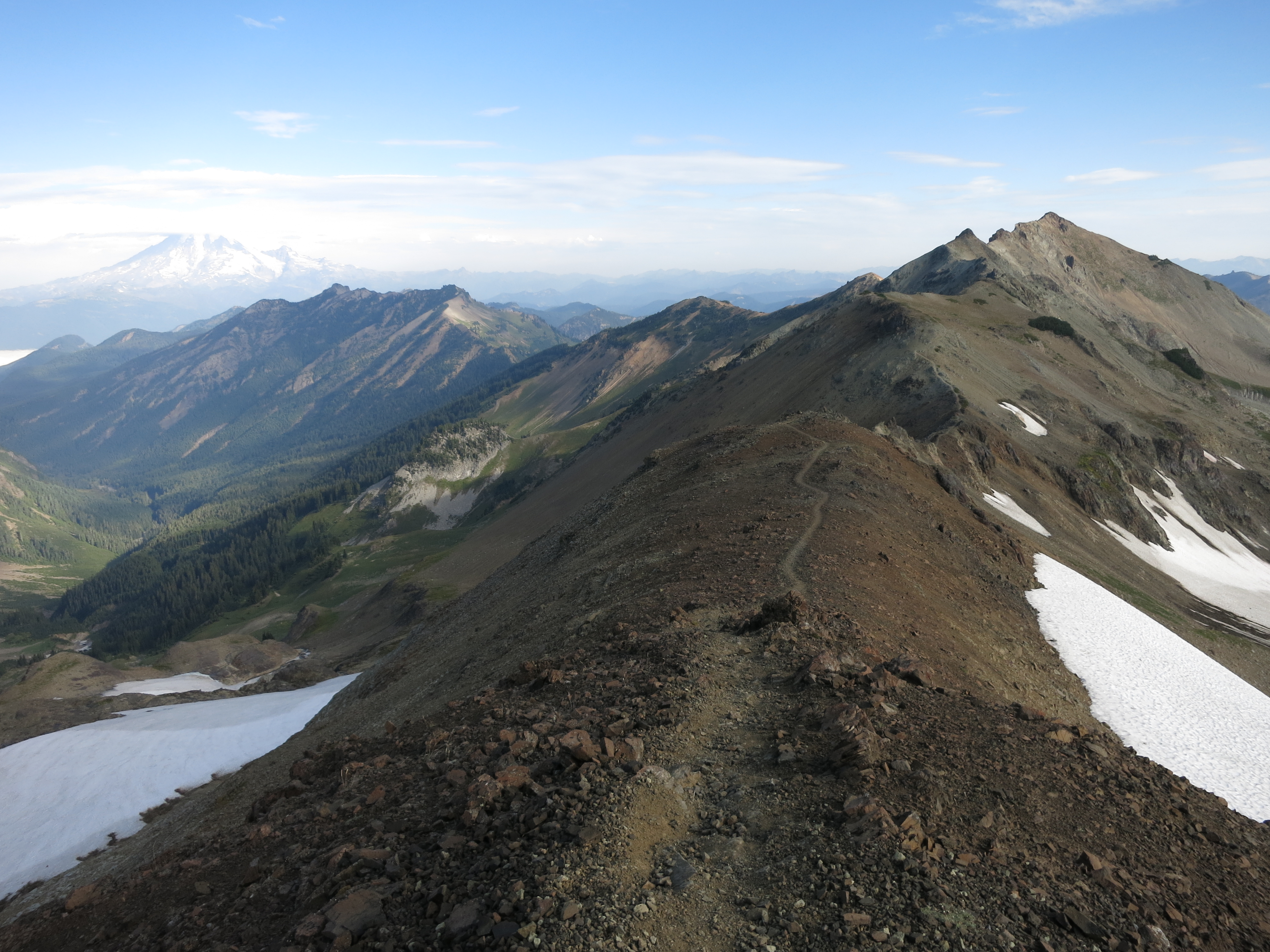 Soon we were there at the top, the 2-mile ridgewalk laid out before us, with the mountain spine reaching all the way to Mt. Rainier in the distance. It was the most beautiful and rugged stretches I’ve ever hiked.